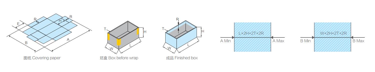 2.盒子大小規(guī)格受面紙尺寸的約束;